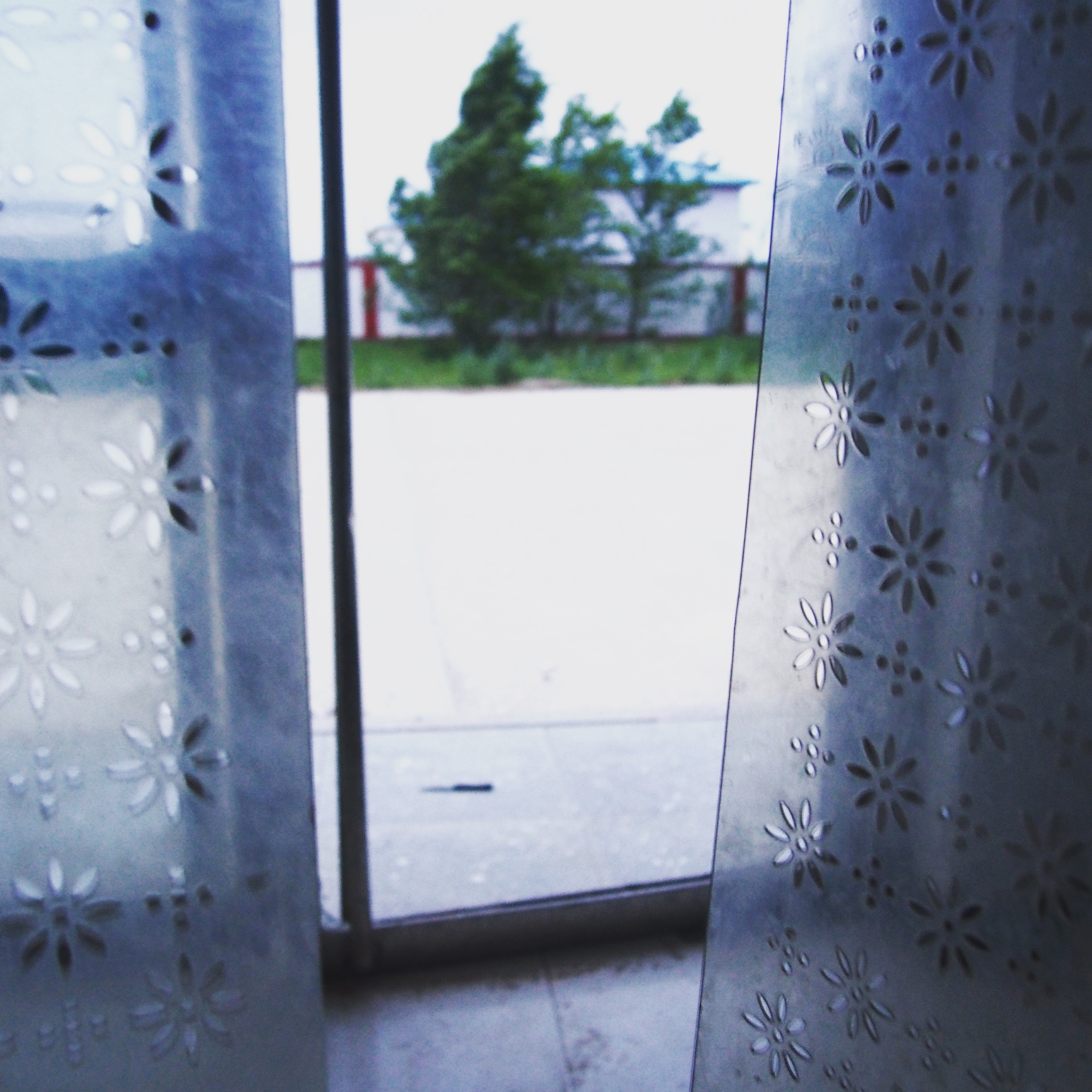 As I write this, it is dark. The wind still roars over the building and through the shattered front door, exciting the medical drapes to tap like footsteps in the entry hall. I keep expecting to see the man standing at the window we opened, but of course there’s no one there. Sounds I can’t identify pitter-patter through the walls. There are cameras at every high corner. Drips can be heard like the gnawing and salivating of an animal. Shadows of the pointed fence posts glide along the walls swiftly like rows of knives as cars hiss down the road. We hope for a good night’s sleep.