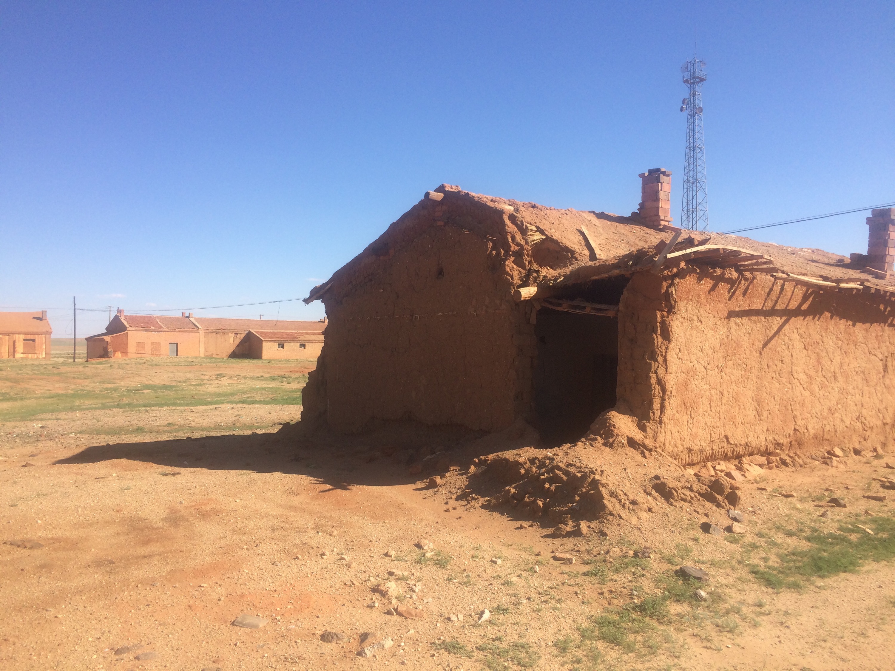 How did we get here? We biked for many miles out of Erenhot, still a part of the Gobi, but today uniquely windy and sunless. Dark clouds loomed. Fed up with the gusts, we pulled aside at a sandy lot, in front of a dim shop to which the stairs had been destroyed or never built. The lot looked like a construction area, but the tracks weren’t clearly from cars or from bulldozers. We might have thought the shop was closed if we weren’t so accustomed to these run down places sparing electricity. We climbed onto the patio and entered the shop, and, being inside, lost the heart to bear with the wind any longer. With hand motions we asked the old shopkeeper if we could set up our tent out front. At first he ignored us, but with some pleading, he beckoned us to follow. Out of the dirt he brought us next door to a locked gate, large and ornate like that of a manor, complete with gold trim and fresh red paint (noted from the paint stains we saw on the grass). In the courtyard there was a small tree and two dilapidated buildings. One looked like a residence and was a bit further.